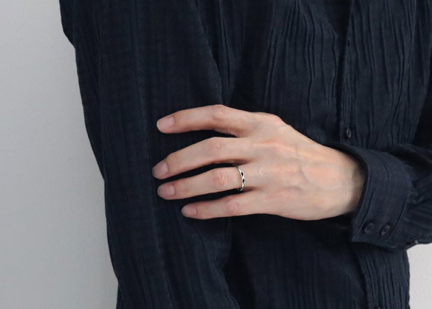 存在感はあるけれどシンプルなデザインは重ね付けはもちろん、様々なデザインのものと合わせられるので永く飽きずに身に着けていただけます。