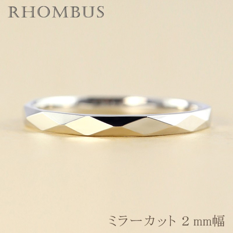 < 甲府ジュエリー > リング 指輪 ひし形カット 2mm幅 プラチナ レディース メンズ Pt900 シンプル ミラーカット 結婚指輪 マリッジリング 単品 日本製 甲府市 受注製作 J-452 ジュエリーケース付 保証書付