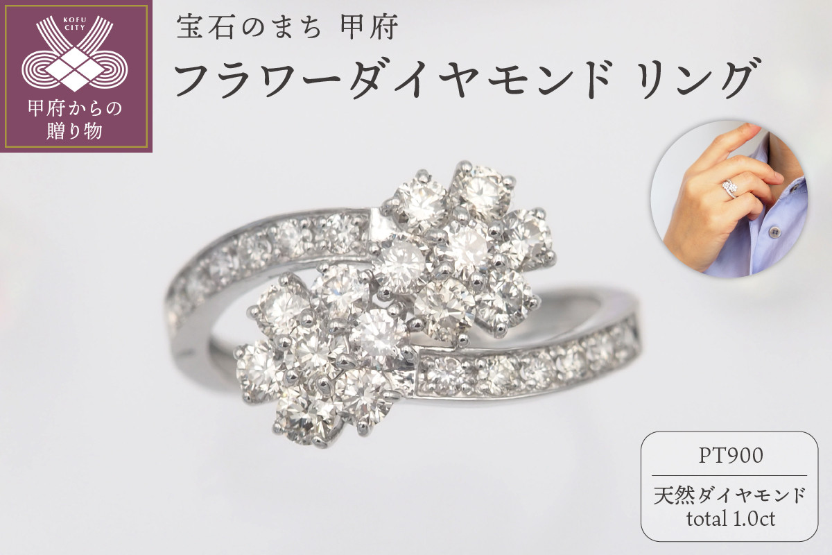 〈 甲府ジュエリー 〉リング レディース ジュエリー アクセサリー ダイヤモンド 1.0ct 天然 プラチナ おしゃれ フラワーモチーフ ギフト プレゼント ジュエリーケース付 鑑別書付 保証書付