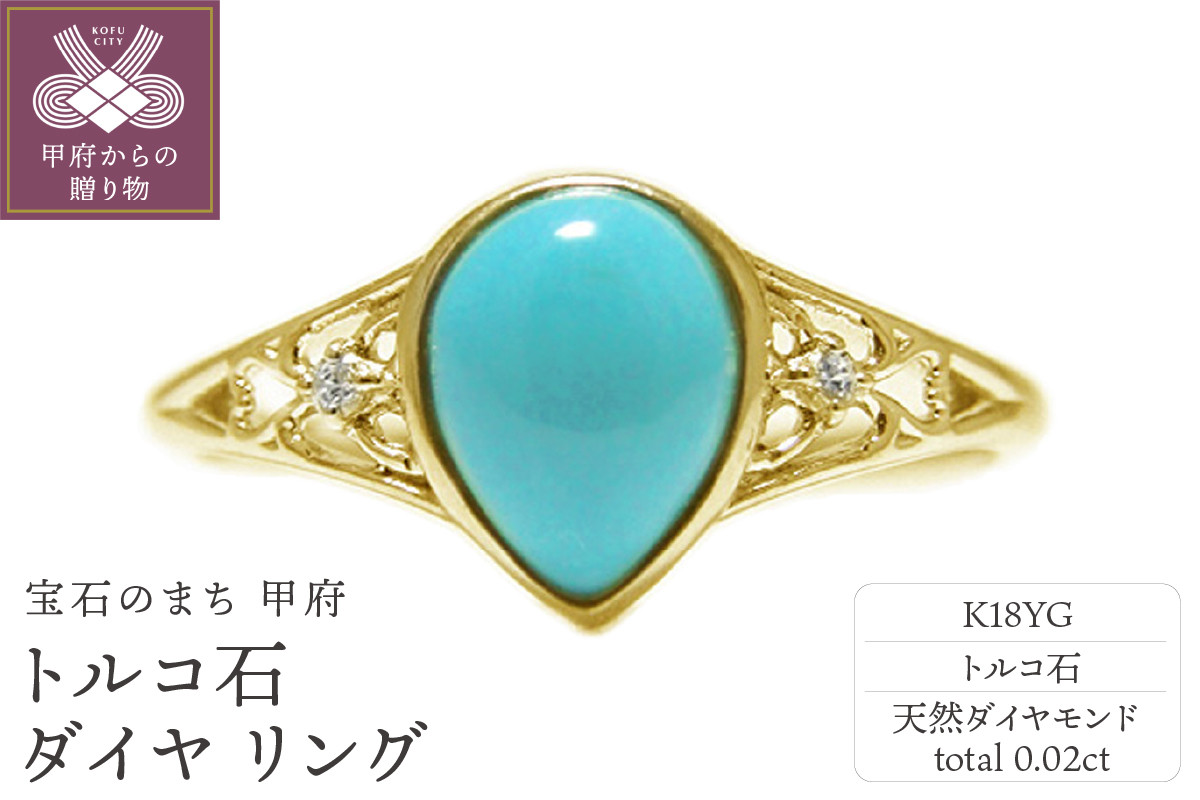 〈 甲府ジュエリー 〉リング 指輪 ジュエリー レディース アクセサリー イエローゴールド トルコ石 天然 ダイヤモンド 0.02ct アンティーク 透かし柄 ギフト プレゼント 専用ケース付 保証書付