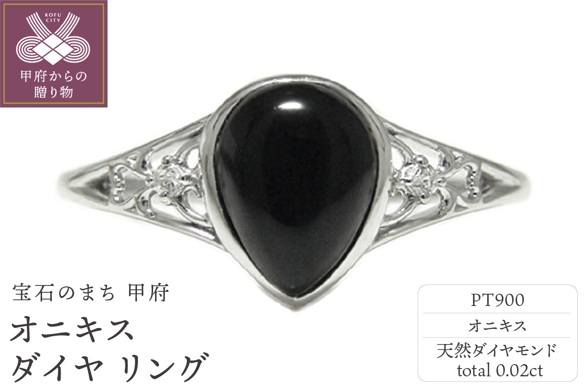 〈 甲府ジュエリー 〉リング 指輪 ジュエリー レディース アクセサリー プラチナ オニキス 天然 ダイヤモンド 0.02ct アンティーク 透かし柄 ギフト プレゼント 専用ケース付 保証書付