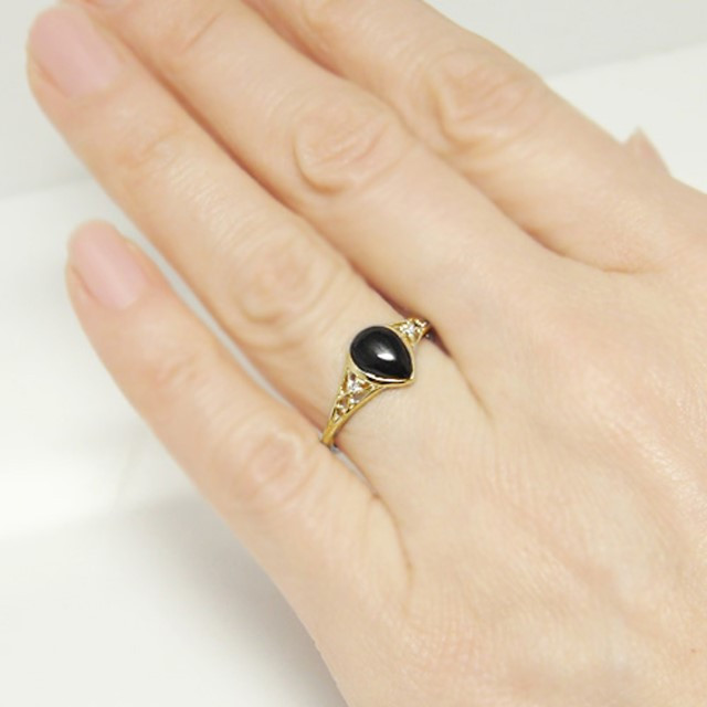 〈 甲府ジュエリー 〉リング 指輪 ジュエリー レディース アクセサリー イエローゴールド オニキス 天然 ダイヤモンド 0.02ct アンティーク 透かし柄 ギフト プレゼント 専用ケース付 保証書付