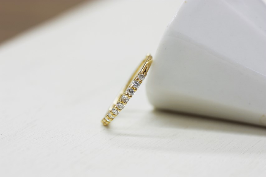 定番のハーフエタニティデザインだからこそ、ダイヤモンドの輝きを引き出すデザインにこだわりました。