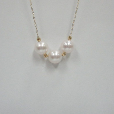 〈 甲府ジュエリー 〉K18 あこや真珠3珠スルーペンダント(10)