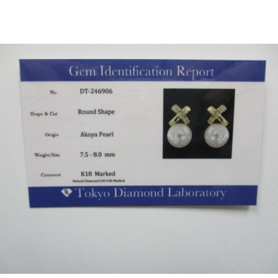 あこや真珠(7.5~8mm珠)ダイヤモンド付ピアスになります。