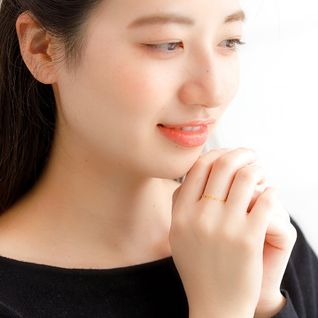 24金なので、黄金色の高級感を楽しめる贅沢なリングです。