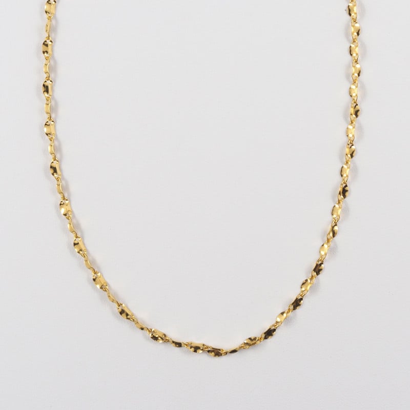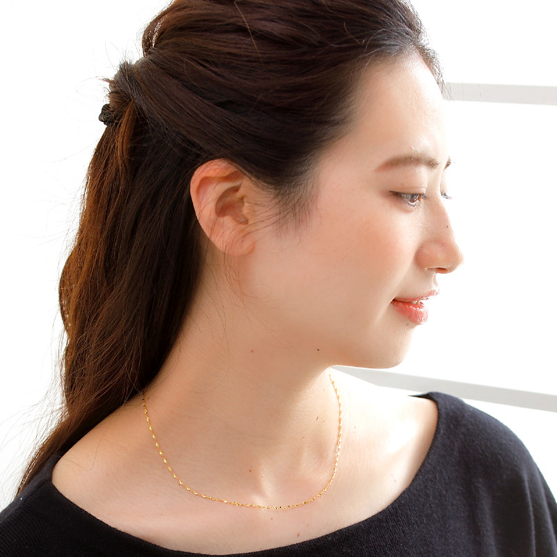 強い輝きを放つ24金のネックレス。1本で存在感ありなので、日常にプラスするだけで高級感がアップします。