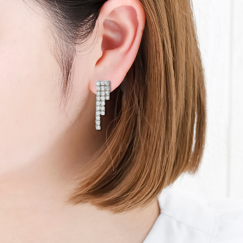 耳元で優しくエレガントに揺れる3本のラインが装いをエレガントに演出し、優美なフォルムとダイヤの煌きがお顔周りを華やかに見せてくれます。