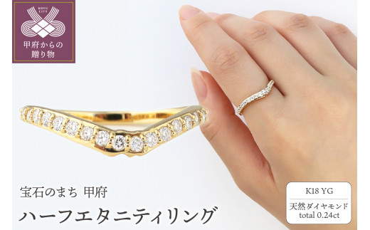 〈 甲府ジュエリー 〉リング 指輪 ジュエリー レディース アクセサリー ダイヤモンド 天然 0.24ct K18 イエローゴールド 逆さ富士 ハーフエタニティ ギフト プレゼント ラッピング ジュエリーケース付 鑑別書付 保証書付