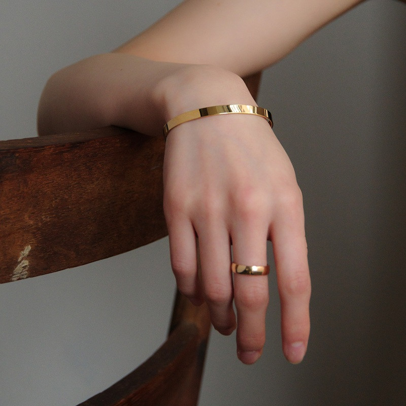 洗練されたシンプルなデザインのバングルは、手首周りにアクセントを添えて、大人のシャープな美しさを引き立てます。