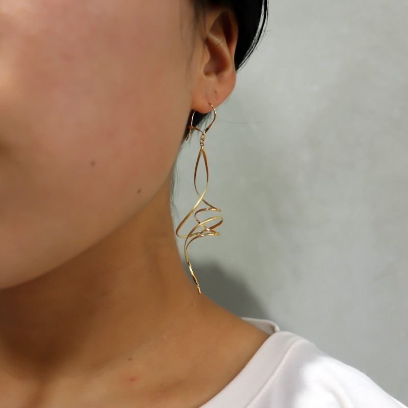 揺れるスパイラルラインピアス 〈 甲府ジュエリー 〉K18 星たちのダンス スパイラルライン ピアスGD-3054