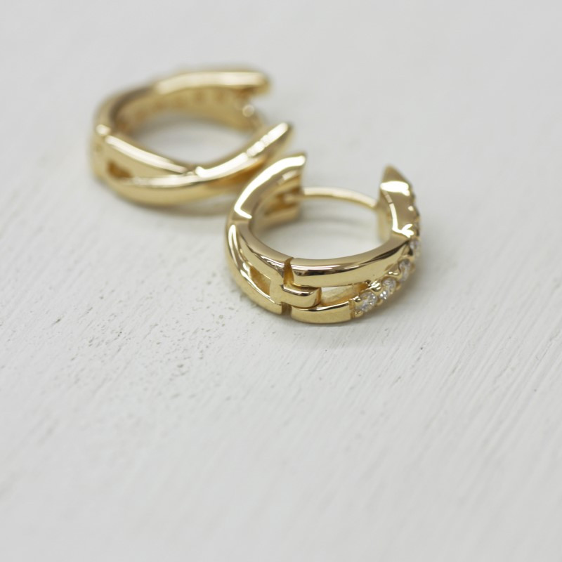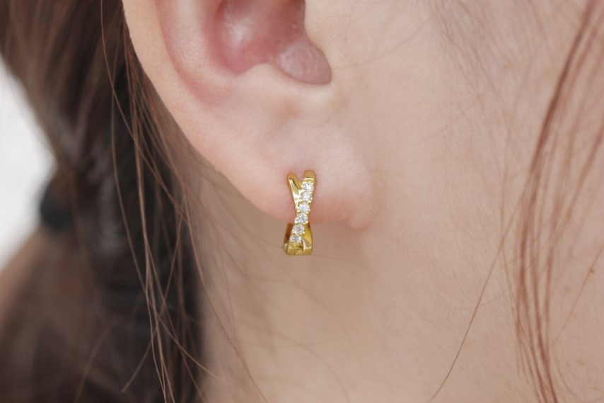 耳元をスタイリッシュに飾る クロスピアス < 甲府ジュエリー >K18 イエローゴールド ダイヤフープピアス 中折れ式 0.16ct 0114466