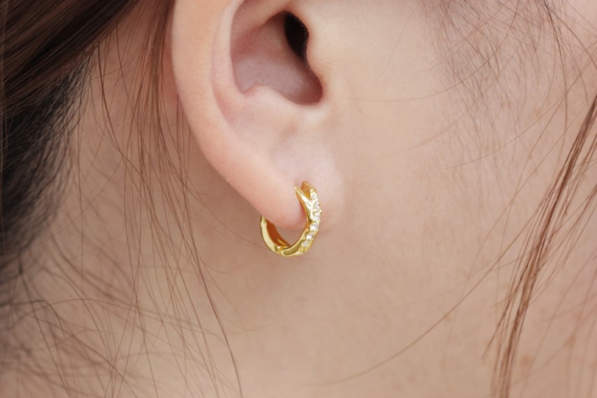 ・小ぶりなため、ピアス穴の位置によっては装着が困難な場合がございます。内径をご参考に、ピアス穴から耳たぶ下の長さがピアスの内径よりも長い場合は装着が難しいのでご注意ください。