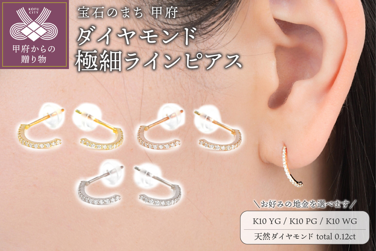 〈 甲府ジュエリー 〉ピアス ダイヤモンド ジュエリー レディース アクセサリー 0.12ct 天然石 選べる 地金 K10 イエローゴールド ピンクゴールド ホワイトゴールド ラインピアス 良質 普段使い 綺麗 ギフト プレゼント ジュエリーケース付 保証書付