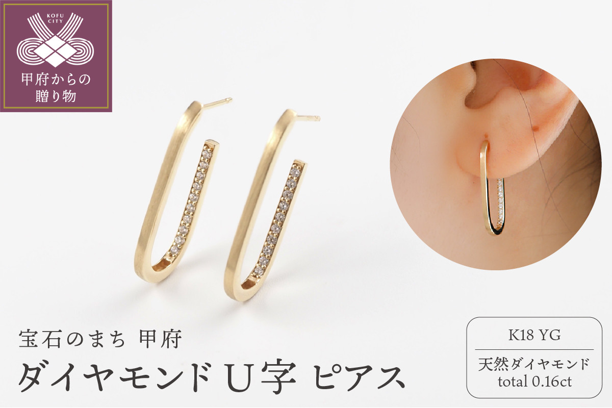 < 甲府ジュエリー > ピアス ジュエリー レディース アクセサリー 天然 ダイヤモンド 0.16ct K18 イエローゴールド U字 ホーニング加工 スタイリッシュ エレガント ギフト プレゼント ジュエリーケース付 ショッパー付 鑑別書付 保証書付
