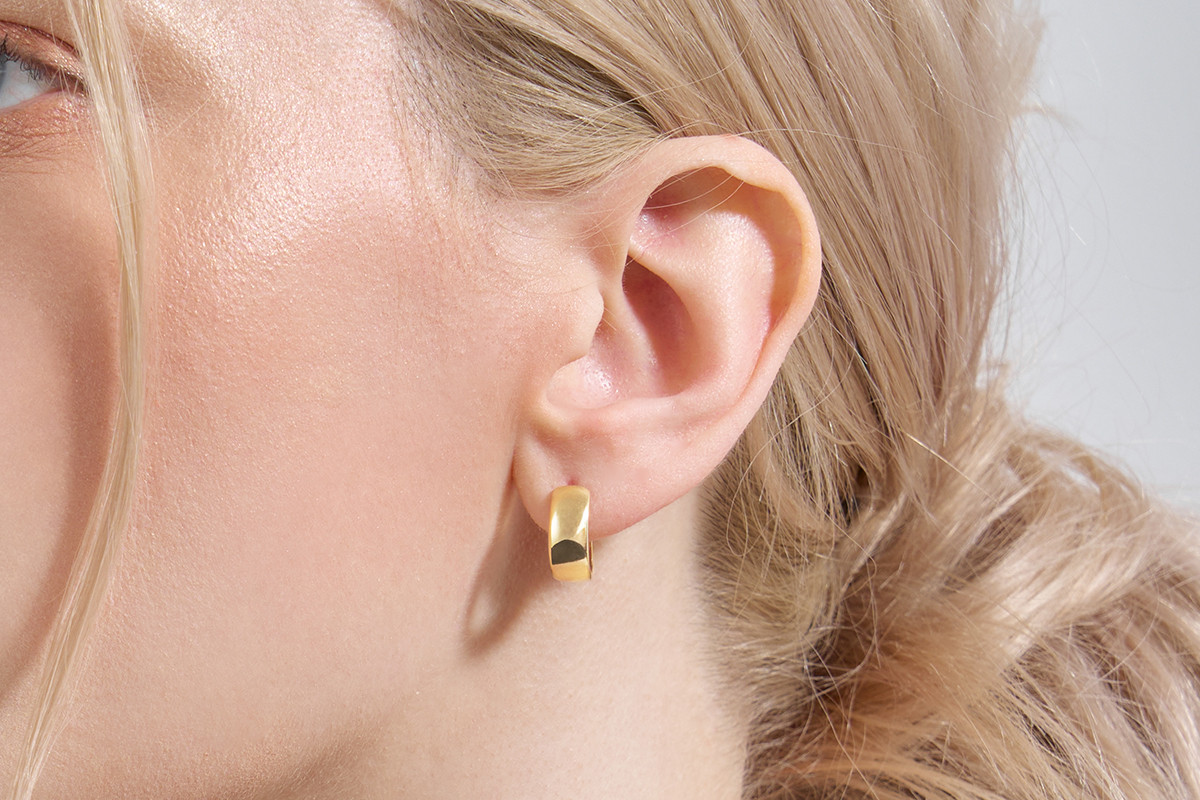 ジュエリーの街甲府の職人が作る、K18 シンプルフープピアスです。 〈 甲府ジュエリー 〉K18 シンプルフープピアス 43-6330