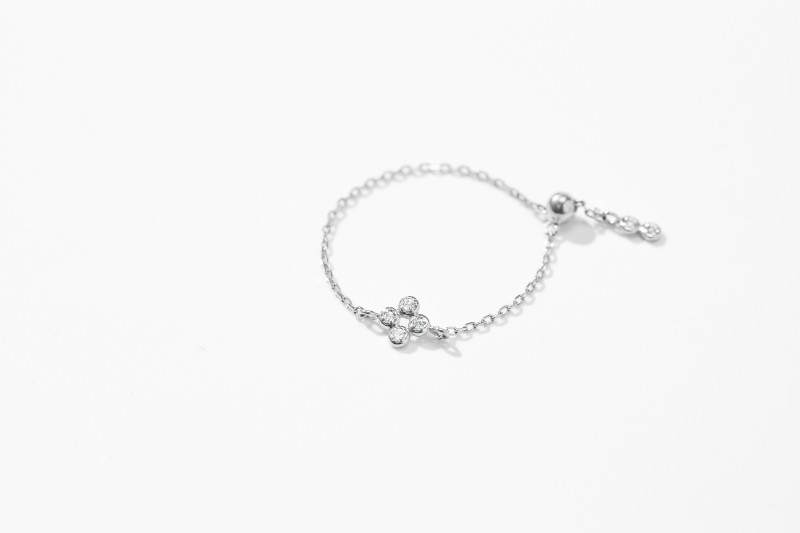 繊細なモチーフがキラキラと輝くダイヤモンドチェーンリング。