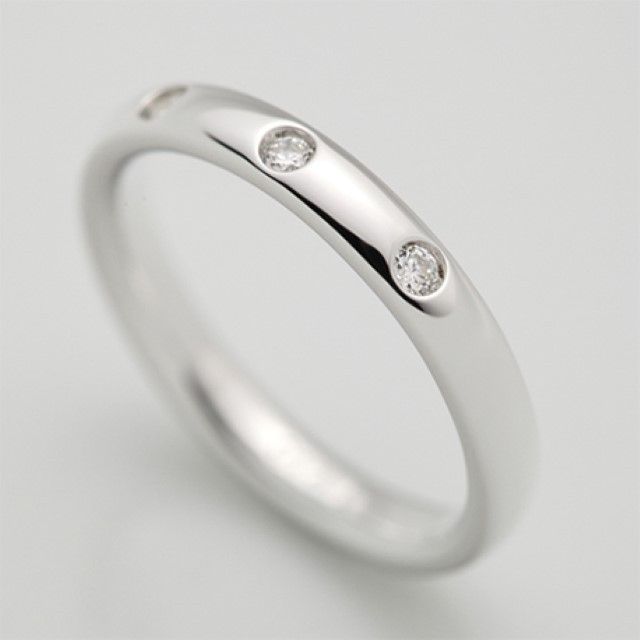 レディースは、衣服の引っ掛かりなどを気にすることなく日常使いできるダイヤモンドの留め方を採用しています。メンズは、表面を繊細なラインでつや消し加工を施しています。