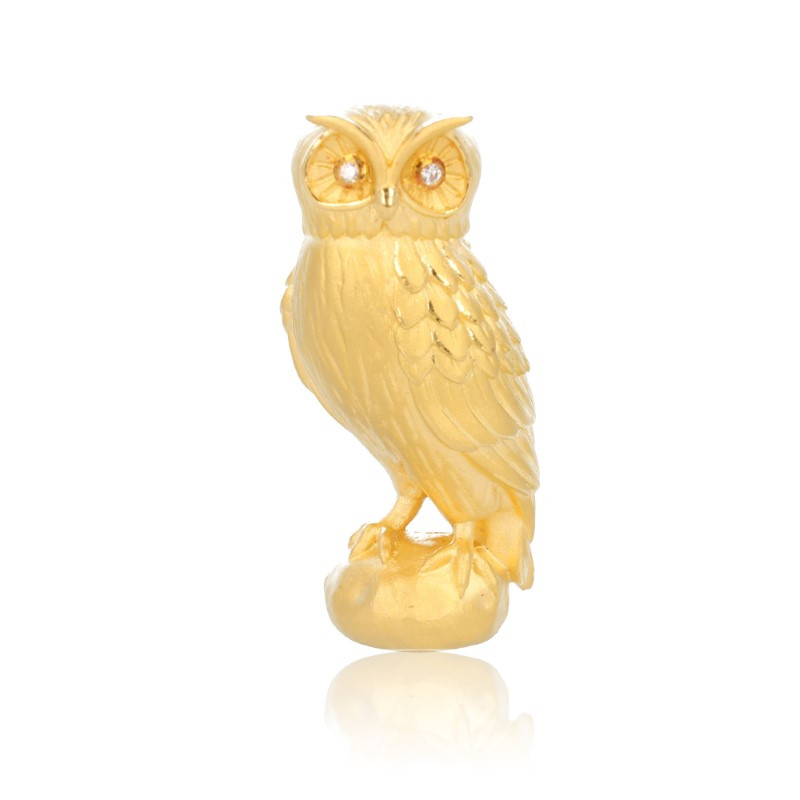 梟(フクロウ)は古くから知恵の象徴として崇められたり、学業成就や事業繁栄のご利益があるとされてきました。山梨県甲府市でファインジュエリーを50年以上製作してきたメーカーによる熟練の職人技が光る純金製の美しい梟は長きにわたって愛されることでしょう。