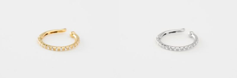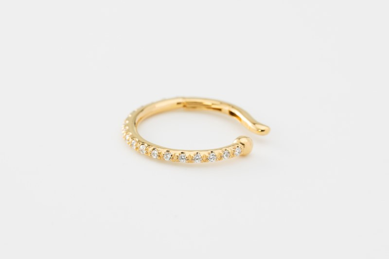 ストレートのラインに並んだダイヤモンドの輝きが美しいイヤーカフ。