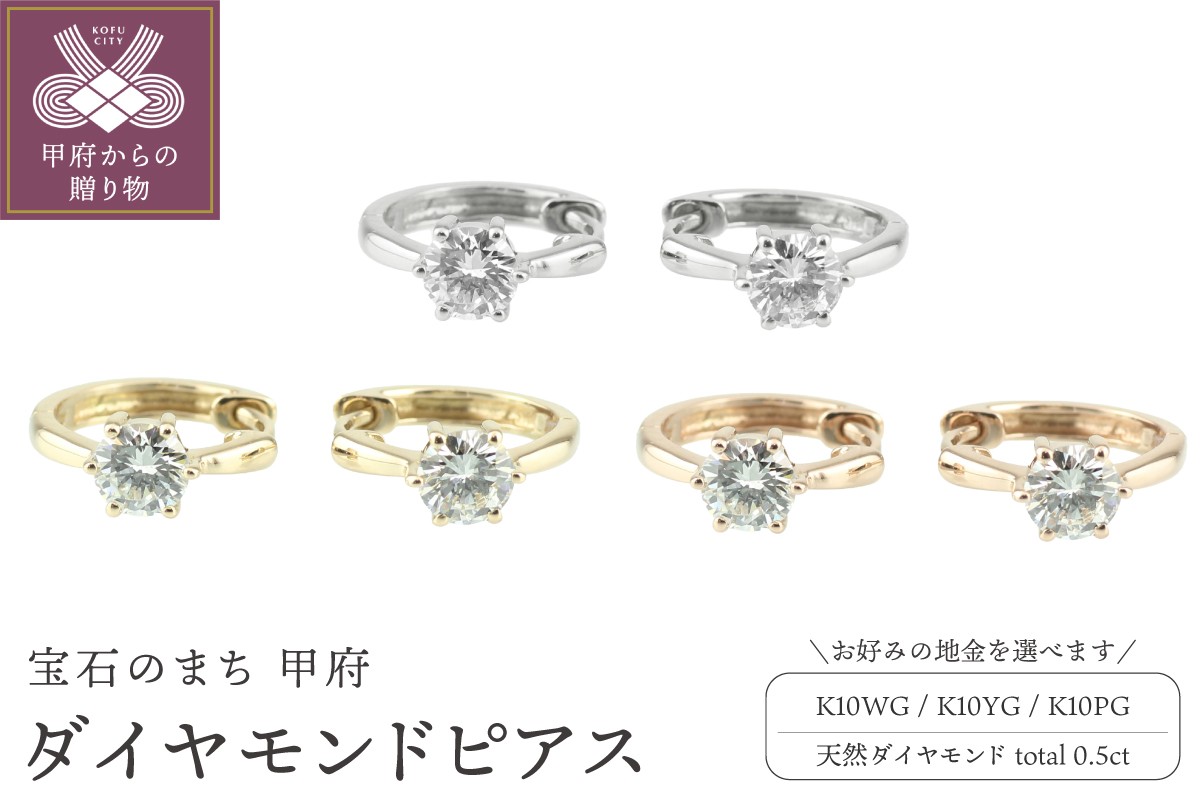 〈 甲府ジュエリー 〉ピアス ジュエリー レディース アクセサリー 天然ダイヤモンド 計0.5ct 2ピース 選べる地金 K10 ホワイトゴールド イエローゴールド ピンクゴールド 大粒 フープピアス シンプル ワンタッチ式 ギフト プレゼント ジュエリーケース付 保証書付