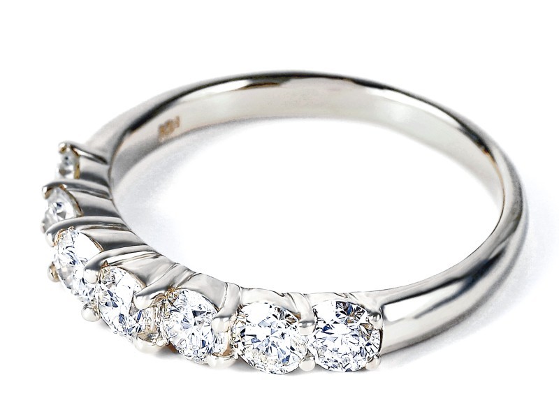 大粒のダイヤモンドを7石使用した、トータル1キャラットのハーフエタニティリングになります。