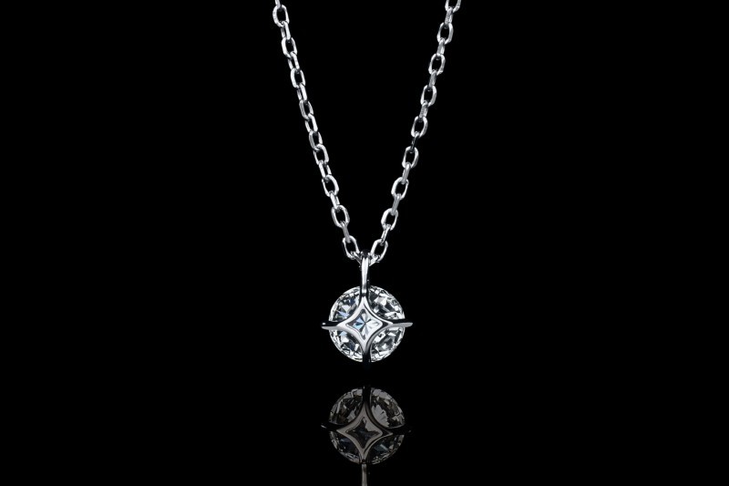 その輝きを最大限に引き出すため、デザインは極限までミニマルに、造形は繊細さと強度を両立するように緻密に仕上げられています。地金素材にも一切の妥協はなく、ダイヤモンドを留めている石枠はもちろん、チェーンや引き輪といったパーツの細部に至るまで、すべての素材を高純度のPt950で統一。その仕立てには、熟練の手仕事による精密な加工と、繊細な石留め技術が必要とされ、職人の高度な技術「匠の技」が随所に宿っています。