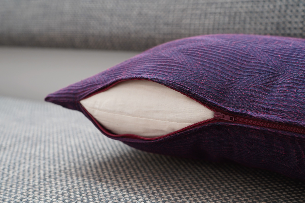 小さなザブトン 見た目はクッション 中綿の量に拘りました 座れるクッション cocioroso GIZA パープル クッション 座布団 ふじやま織 日本製 和風 日本 伝統 職人 富士吉田市 山梨