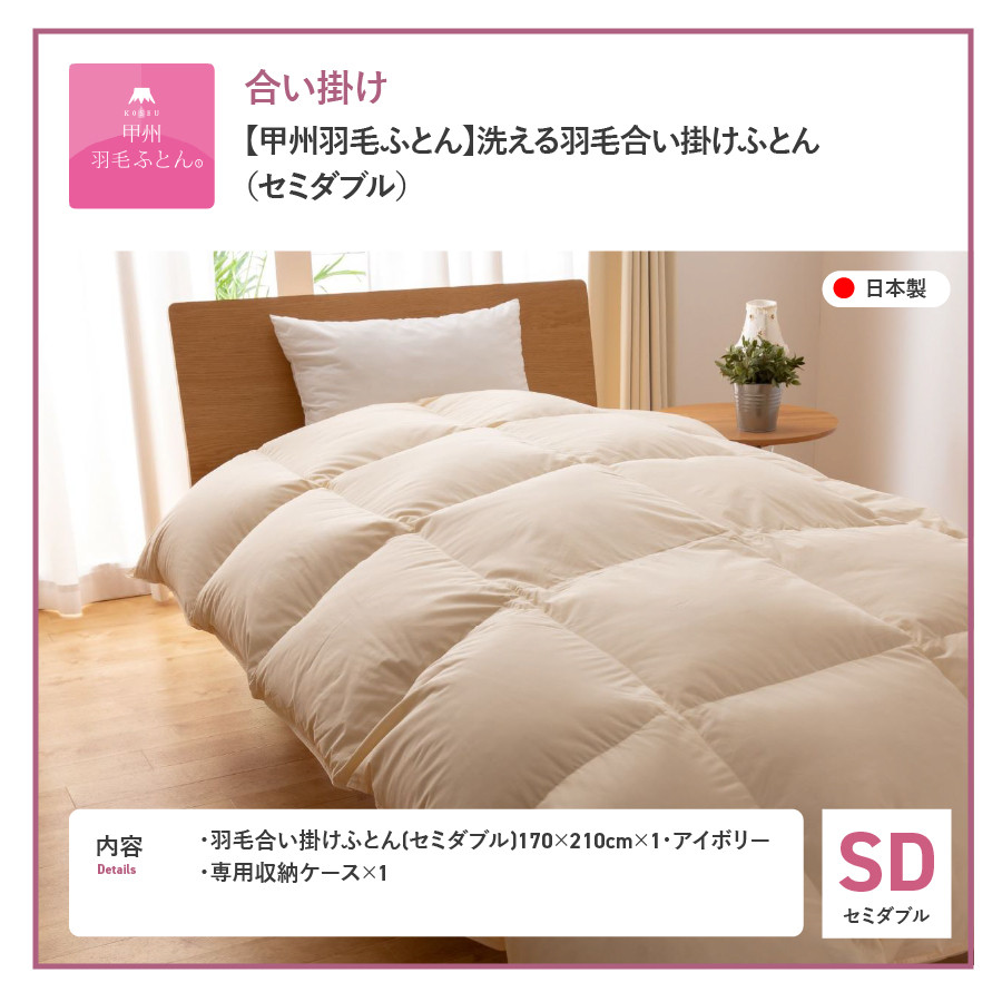 世界遺産「富士山」の麓で作られたちょうど良い厚みの羽毛合掛け布団 羽毛布団 【甲州羽毛ふとん】洗える羽毛合い掛けふとん(セミダブル) 合掛けふとん 掛け布団 寝具 洗える布団 セミダブル 年内発送 山梨 富士吉田