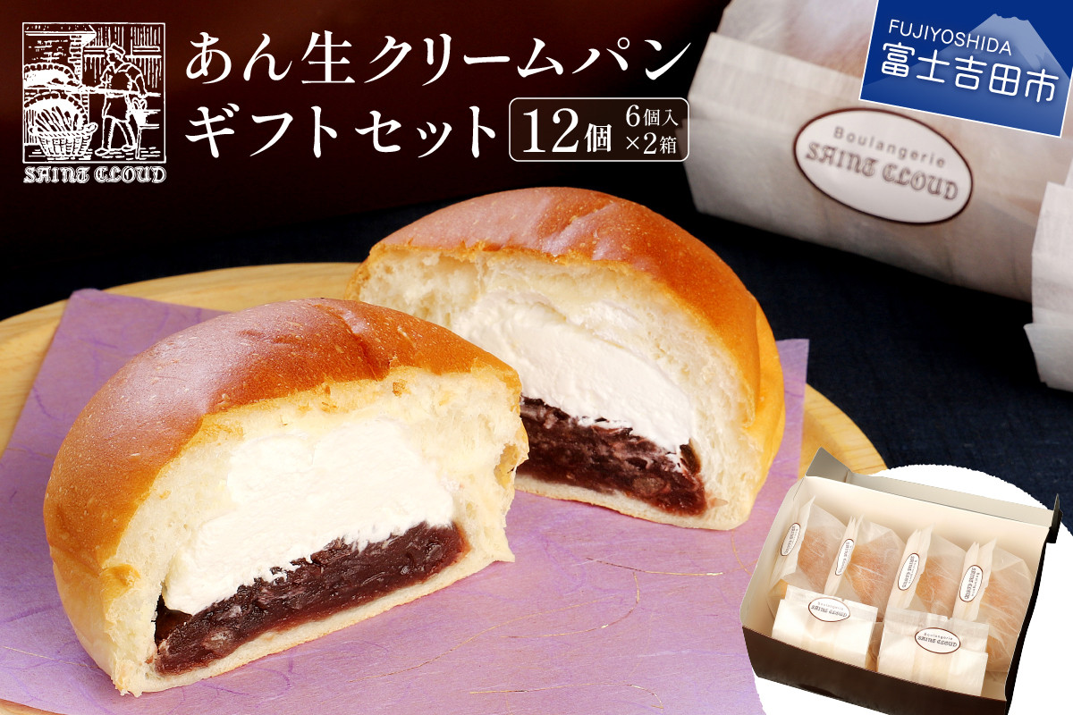 累計30万個販売!創業から人気No.1のサンクルー名物です。 あん生クリームパン ギフトセット 12個入 パン あん生 あんぱん 化粧箱 贈答 箱入れ あん生クリームパン 山梨 富士吉田