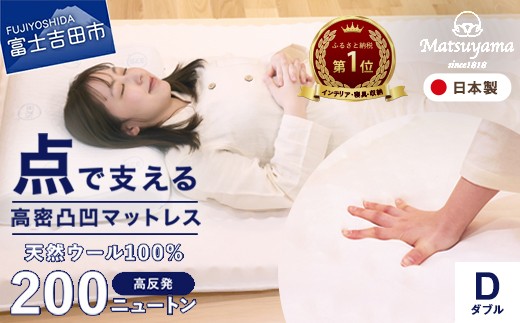 高反発の点で支えるマットレス 高密凸凹ウレタンマットレス 天然ウール100%入り(ダブル) 寝具 マットレス 敷布団 ウレタンマットレス ダブル 山梨 富士吉田 すぐ届く 即納 最短発送 最速発送 スピード発送