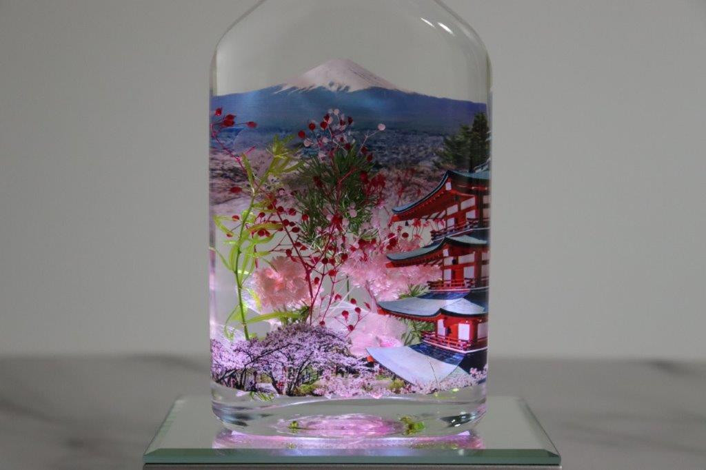富士吉田の風景を再現した粋なハーバリウム 【LEDライト付】ハーバリウム 富士山 インテリア プリザーブドフラワー 春 五重塔 天然素材 山梨 富士吉田