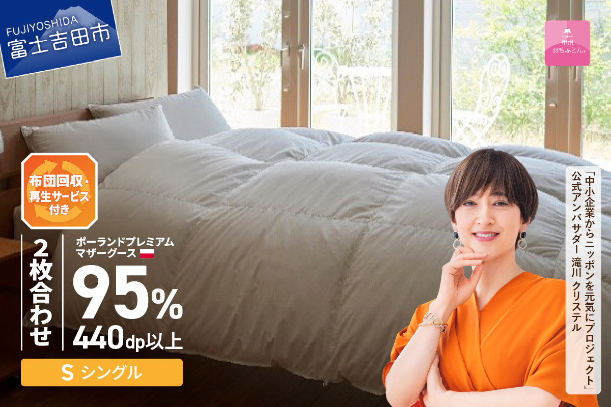 布団回収・再生サービス付き・世界遺産「富士山」の麓で作られた羽毛ふとん。 【甲州羽毛2枚合わせふとん】布団回収・再生サービス付き・ポーランドプレミアムマザーグースダウン95%超長綿 ホワイト (シングル) お任せカバー付き 羽毛布団 寝具 掛けふとん 布団 掛布団 富士吉田 山梨