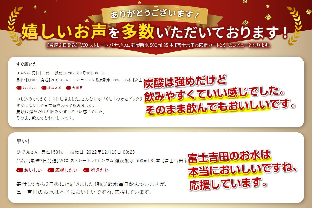 ~軟水のバナジウム天然水 × 世界最高レベルの炭酸充填量5.0 無糖 強炭酸水~ 【最短3日発送】VOX バナジウム強炭酸水 500ml 35本 【選べる ストレート/レモンフレーバー/ラベルレス】【富士吉田市限定カートン】 防災 備蓄 保存 ストック 防災グッズ 山梨 富士吉田