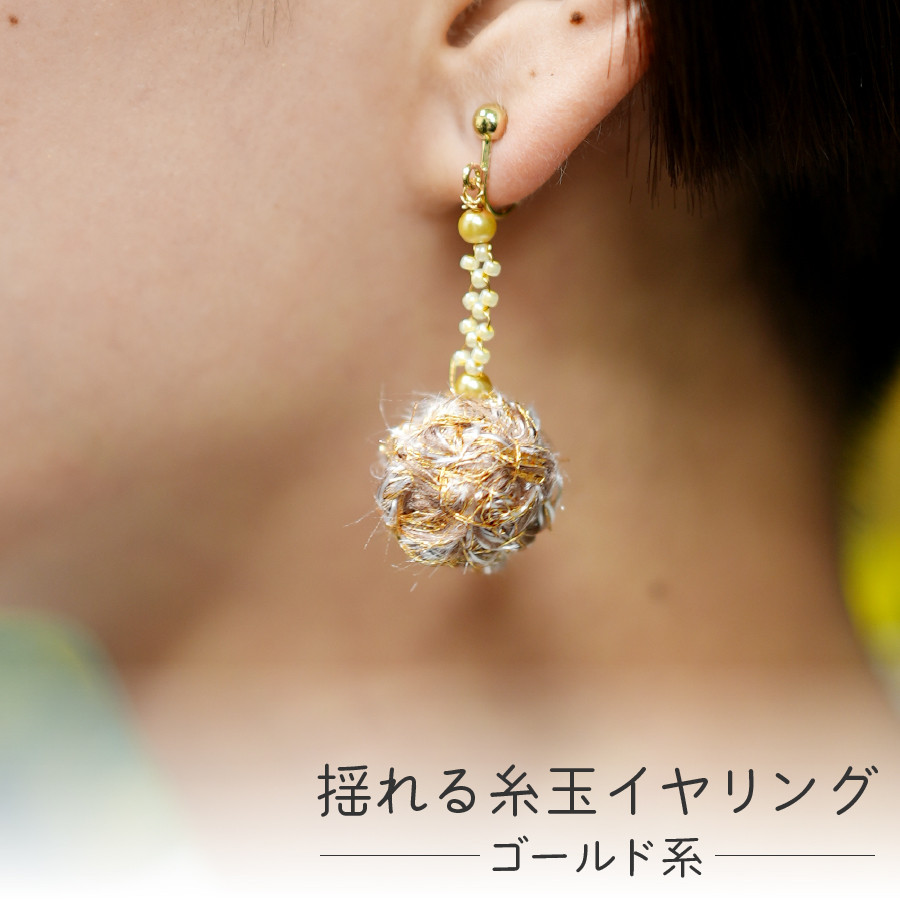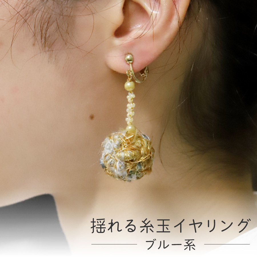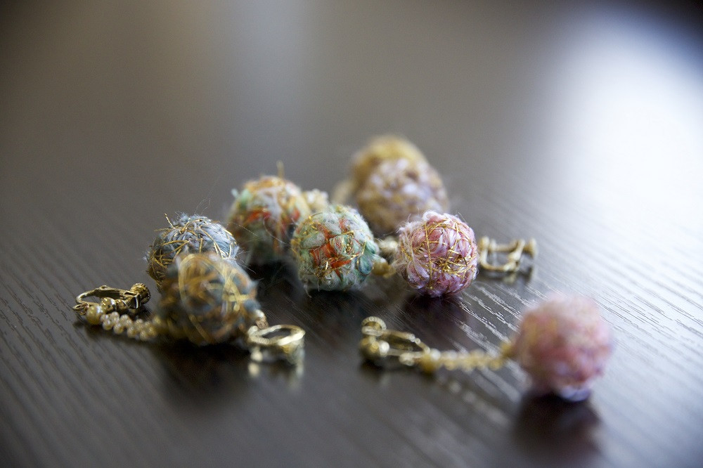 「捨て耳」を使ったアップサイクルイヤリング 【Jupiter A・a】揺れる糸玉イヤリング イヤリング アクセサリー レディース 糸玉 ハンドメイド 山梨 富士吉田