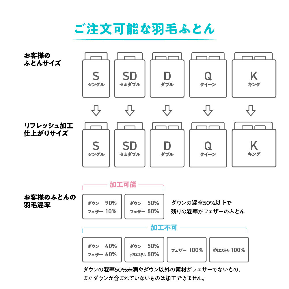・リフレッシュ加工キット到着後、できるだけ速やかに羽毛ふとんをお送りください。