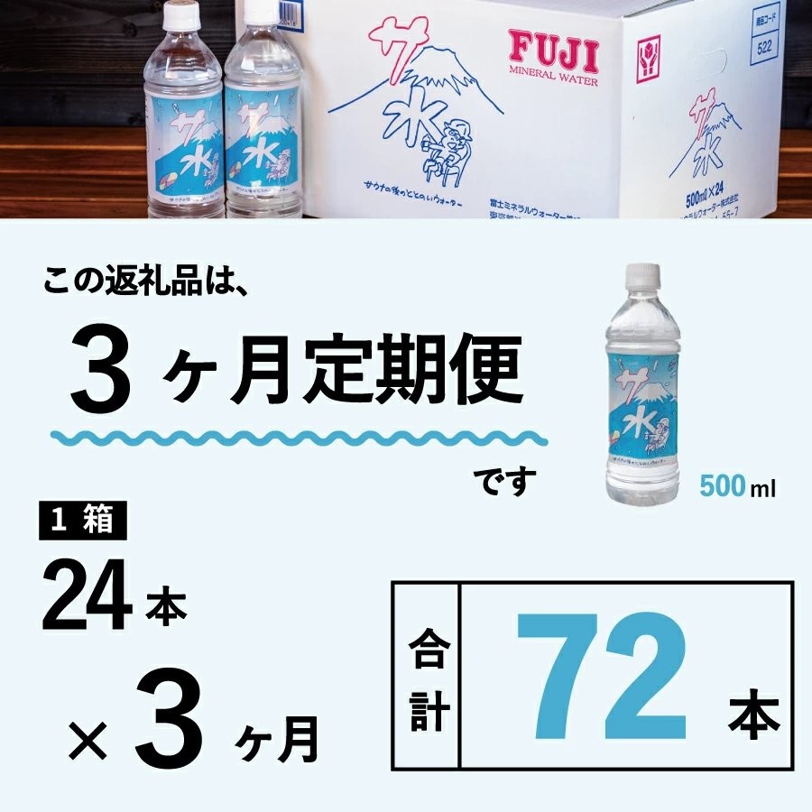■関連キーワード:定期便 水 ミネラルウォーター 天然水 500ml×24本入り(1箱)×3か月 軟水 サ水 サウナ キャンプ アウトドア 富士ミネラルウォーター サ活 防災 保存 ストック 備蓄 タナカカツキ デザインラベル 防災グッズ 山梨 富士吉田
