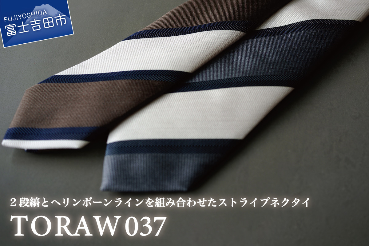 2段縞とヘリンボーンラインを組み合わせたストライプネクタイ 【TORAW】TORAW037 ネクタイ ビジネスネクタイ シルクネクタイ プレゼント 日本製 山梨 富士吉田