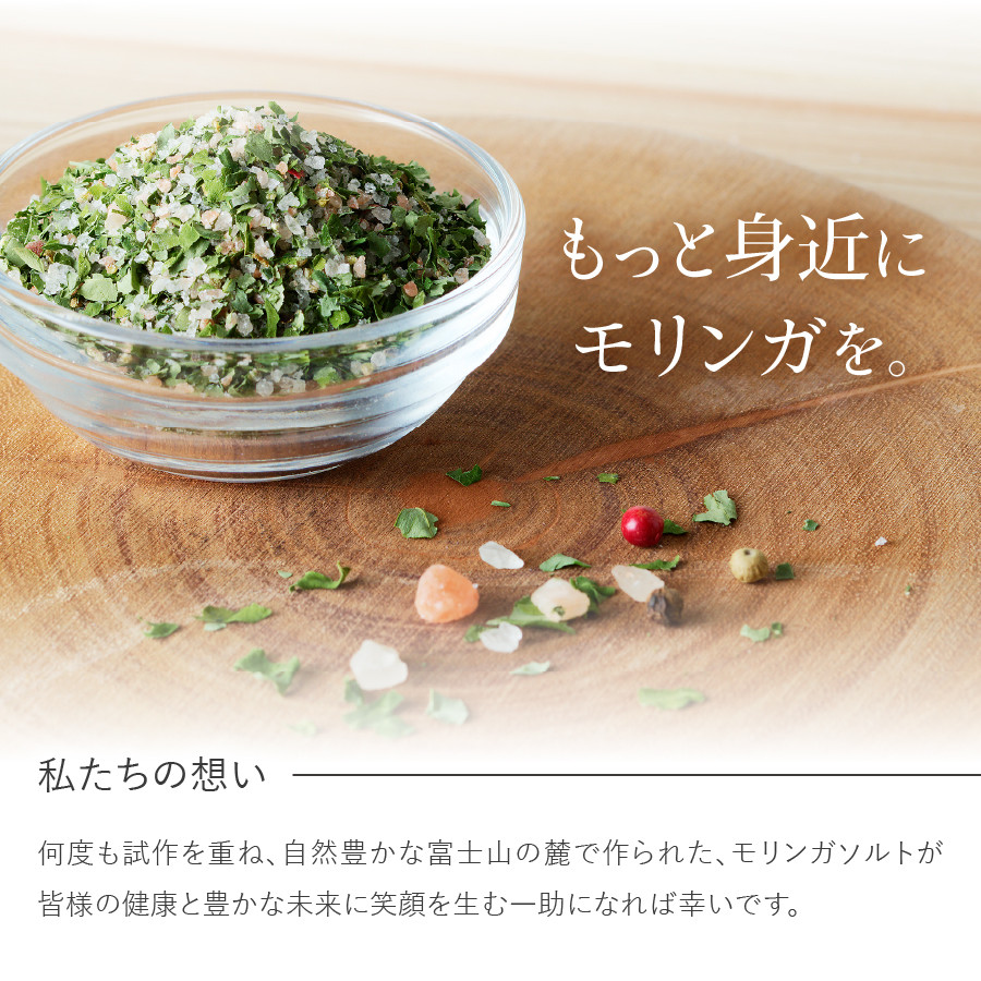 当社のモリンガソルトは、自然豊で雄大な富士山に沢山のパワーを頂き、愛情込めて一つ一つ手作りで作っております。