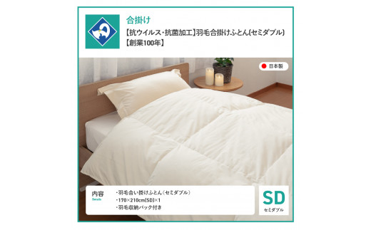【抗ウイルス・抗菌加工】羽毛合掛けふとん(シングル)【創業100…