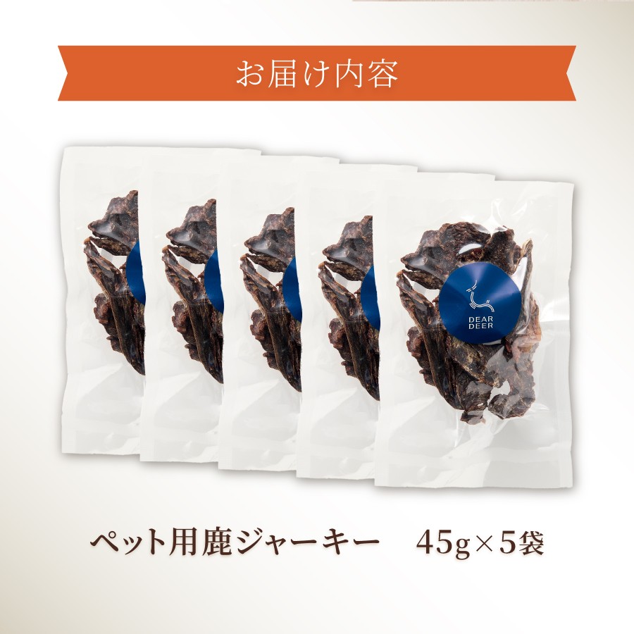 ~DEARDEERオリジナル 富士山麓の鹿肉100%のペット用ジャーキー~ ペット 犬 おやつ ジビエ 無添加 鹿ジャーキー 45g×5袋 鹿肉 100% 犬 猫 ペットフード ドッグフード キャットフード 鹿肉ジャーキー ご褒美 富士山麓 DEARDEER 山梨 富士吉田 犬おやつ