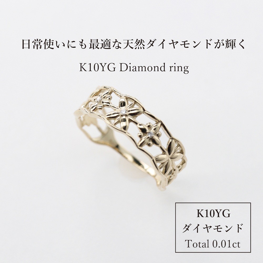 日常使いにも最適なK10YGダイヤモンドリングです。