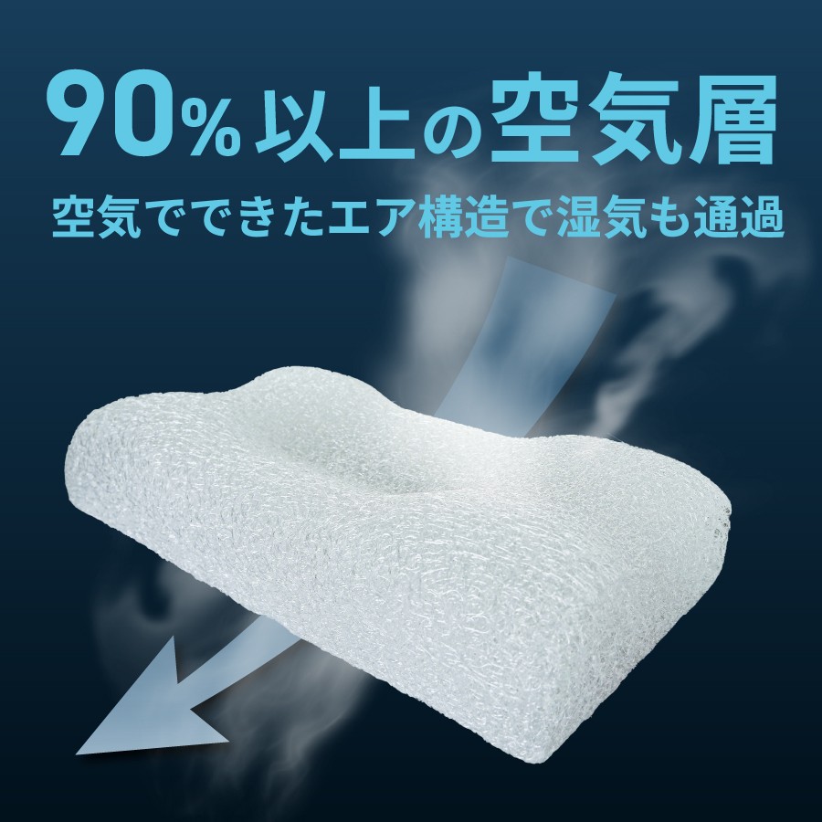サイド面のメッシュ素材と90%以上が空気層のエア構造により、寝返りを打つたびにエア構造体の枕は中の空気が新しい空気に入れ替わります。