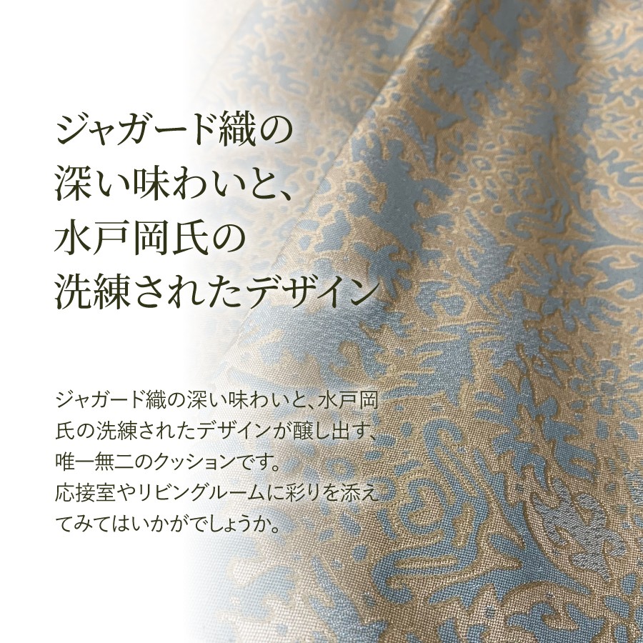 ジャガード織の深い味わいと、水戸岡氏の洗練されたデザインが醸し出す、唯一無二のクッションです。