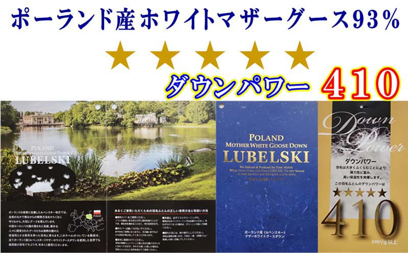 ポーランドの南部に位置したルベンスキー地方では恵まれた気候で飼育されたダウンパワー410cm3/gのマザーグース、独特の優れた保温性とかさ高を持った羽毛です。