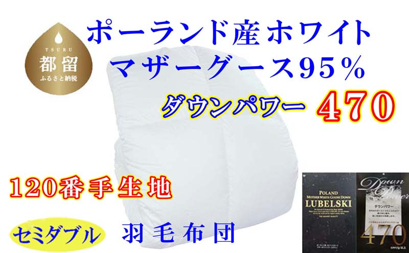 羽毛掛け布団 ポーランド産マザーグース95%ダウンパワー470 羽毛布団セミダブル170×210cm