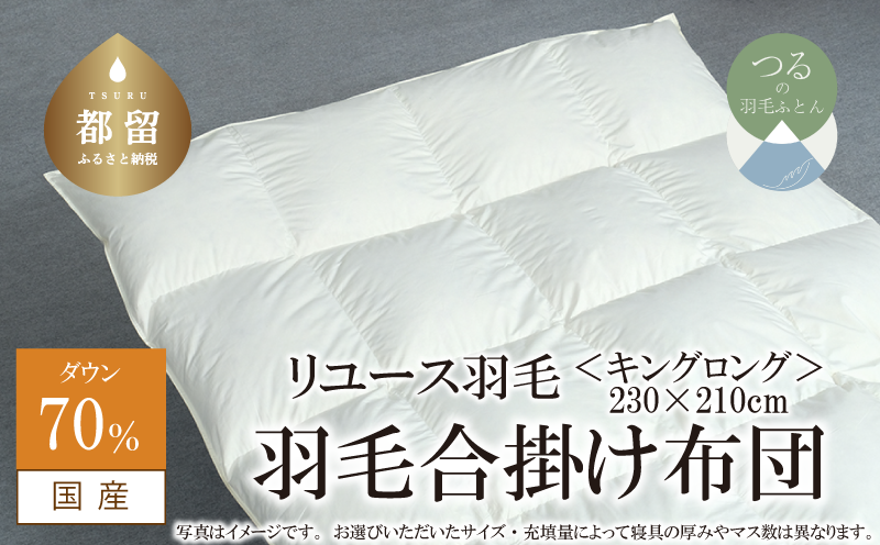 ふるさと納税 山梨県 都留市 特産品 おすすめ 【合掛け】羽毛布団 ダウン70% 230×210cm(キング)リユース羽毛 国産