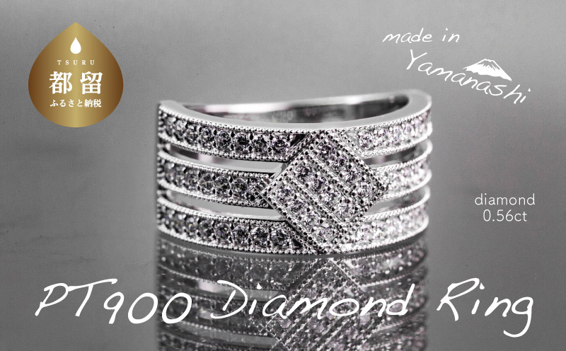 | 容量 | *pt900 ダイヤモンドリング 0.56ct×1個 *ジュエリーケース付 (甲州織物のオリジナルクロスにラッピングしてお届けします) *保証書付 *鑑別書付 【原材料】 ・地金 pt900 ・ダイヤモンド 1/100(RD)56石 |