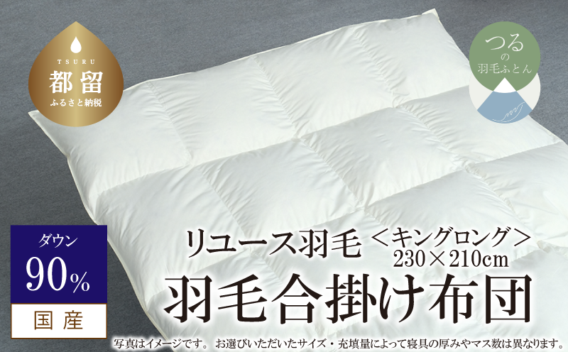 ふるさと納税 山梨県 都留市 特産品 おすすめ 【合掛け】羽毛布団 ダウン90% 230×210cm(キング)リユース羽毛 国産