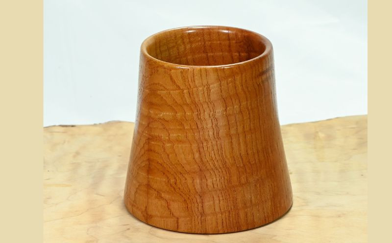 欅帯杢で作られたペン立て、ペンの収納部は直径約35mm 万年筆が約3本収納出来ます。 木は年を重ね年輪として太く育ちます。帯杢は縦方向にも育ち帯の様な膨らみを作ります。 帯杢は全ての木に発生する突然変異、この木は欅に発生し希少木材として工房に来ました。 立木では黒柿の表情は見られません、伐採して模様が現れます。 帯杢の見解は、工房(木を知る者)の見解で科学的根拠では有りません。 事業者 :めぐみ工房 連絡先 :0554-43-6423 定休日 : 月曜日 火曜日 水曜日